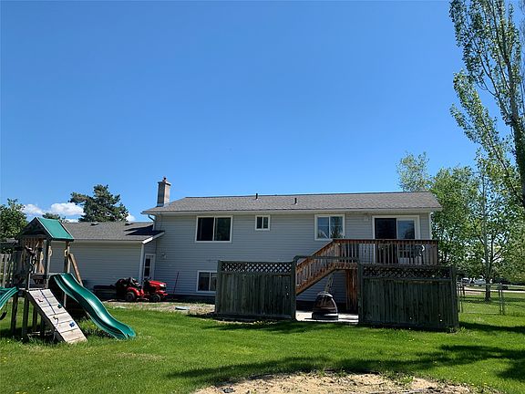 Great NE Kalispell location with beautiful mountain views! Large home, ~ 2,400 sq. ft., and large lot, ~ 1/2 acre. Split entry with living, dining, kitchen, master bedroom & bathroom, guest bedroom (#2) & bathroom. Lower level with large family room, gas stove, pantry, laundry, guest bedroom (#3) & bathroom, partially finished den. Oversized 2-car garage. Huge back yard with deck, patio, RV parking, shed, lean-to. In need of TLC including carpet and windows.