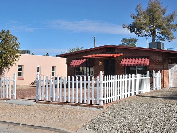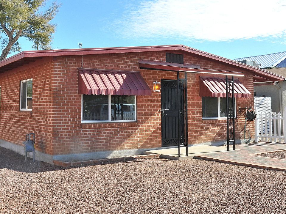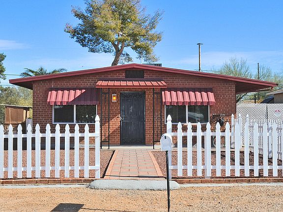 This updated tasteful bright and colorful double red brick home has been reimagined with modern conveniences while retaining its classic Americana charm. It's even complete with a white picket fence! This centrally located home is in the desirable Garden District Neighborhood within walking distance of Trader Joe's, Tucson Botanical Garden and Roadhouse Cinema! All remodeling was completed within the past 18 months. Which includes, a new package A/C unit, tankless gas water heater, double-pane windows, upgraded 200 amp electrical service, laundry Room Addition includes a LG stackable washer/dryer, Custom metal front porch and acoustic tongue/groove ceiling with a custom wood crown molding finish. The updated kitchen has new stainless steel appliances. The primary bathroom features a walk-in shower. The large and deep backyard has ample space for outdoor living or whatever you can imagine. A new roof was installed in 2018, re-coated in December 2023. You will love the finished detail of this beautiful and cozy Home!