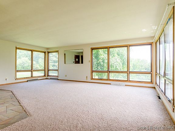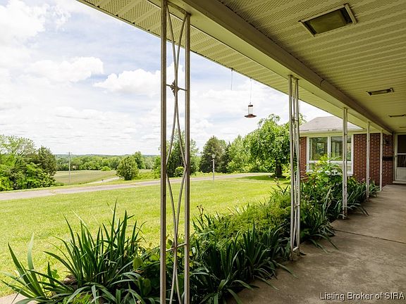 DIAMOND IN THE ROUGH...4 BR 1 1/2 BA home sits hilltop with a SPECTACULAR view from Washington County, all the way to Floyd County!!! This GEM is waiting for the right owner with the desire to bring this great home back to life! The 2 fireplaces, hardwood floors, additional 480 SF SUNROOOM, and lovely covered patio are just a few of the great features of this brick ranch with 2 car garage. A one-of=a-kind setting on 1.84 acres just outside of town is the perfect location with a easy commute to I-65 or LVL metro. HOME BEING SOLD AS-IS