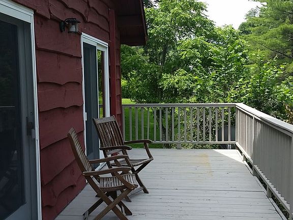 Chalet on a Pond--Very Quiet! Great Centrally Located between Boone and Blowing Rock! - Great setting for quieter tenants! Perfectly situated between Boone and Blowing Rock, this home resembles a mountain chalet with wrap-around decks and a view over a pond and rolling hills. This house features a cathedral ceiling in the living, dining room, and kitchen combo. Kitchen comes equipped with refrigerator, dishwasher and stove. There is a beautiful stone fireplace with gas logs for those cold winter nights! There is a bathroom and two bedrooms on the main level. There is a very spacious loft area upstairs with room for an extra living area. The lower level is light filled with two sets of sliding doors onto a covered, stone patio.The lower level has an extra living room and kitchenette with sink and refrigerator. There is also a bonus room downstairs with closet. This house does not lack storage, with several closets and pantry space throughout. Downstairs has a full bath with stand-up shower. Downstairs also has a laundry room with washer and dryer. Outdoor fire pit in the yard for those smores nights! There is a garden area for tenant use if desired. Parking for two cars. House is on well water. Utilities not included. Pets negotiable on a case by case basis. Perhaps a small dog or two, less than 30lbs. No cats allowed. Yard work included in rental price. Mitsubishi split unit for electrical heat and air on main level. Propane wall unit on downstairs level. (RLNE2892406)
