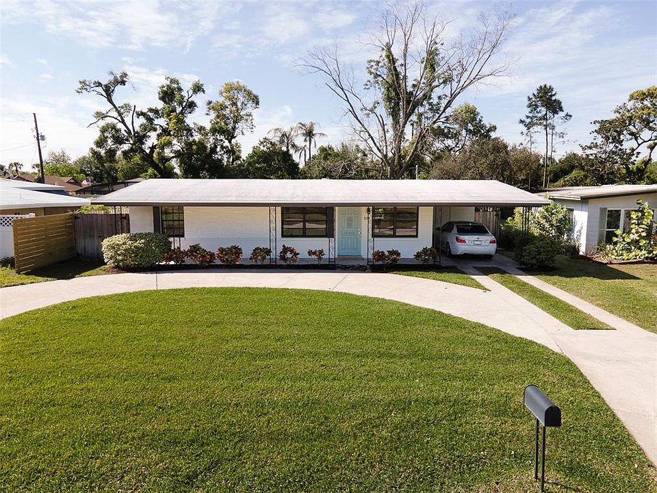 Say HELLO to this charming 1959-built home nestled in the heart of Winter Park! Situated on a sprawling green lot adorned with lush landscaping, this sweet older home exudes warmth and character at every turn. As you approach, you'll be greeted by a picturesque circular drive leading to a one-car carport, offering convenient covered parking. Step inside to discover a freshly painted interior (and exterior) that sets the stage for a cozy and inviting atmosphere. New flooring in the bedrooms adds a touch of modern elegance while maintaining the home's timeless appeal. Beneath the current flooring, you will find treasured terrazzo flooring. New lighting fixtures and ceiling fans enhance style and comfort, providing a refreshing ambiance in every room. With two open porches beckoning you to relax and unwind, and a bonus sunroom with an attractive wood ceiling that bathes the space in natural light, every corner of this home is filled with delightful possibilities. Whether you're hosting gatherings or enjoying quiet moments with loved ones, the spacious backyard provides the perfect backdrop for outdoor enjoyment. Picture-perfect and meticulously maintained, this home is truly in pristine condition, a testament to the care and attention it has received over the years. Convenience meets functionality with an enclosed area housing the laundry facilities, and a water heater with a shower and toilet., ensuring everyday tasks are a breeze. With its charming details, ample living space, and idyllic setting, this Winter Park gem is ready to welcome you home. Don't miss your chance to make this lovingly maintained residence your own! A one-year home warranty is being provided by the seller for your peace of mind. Call today to schedule your private showing.