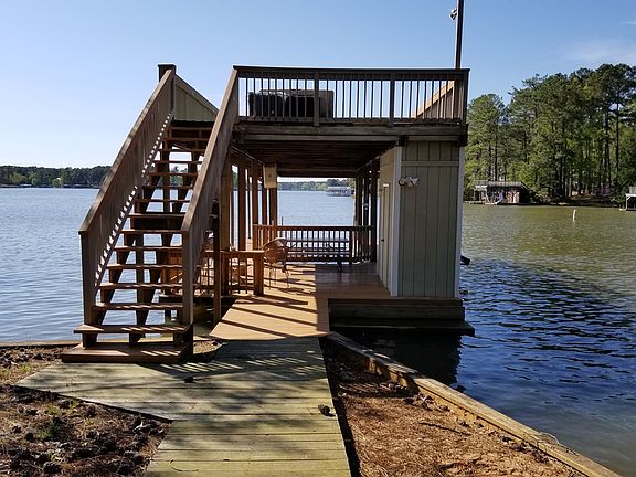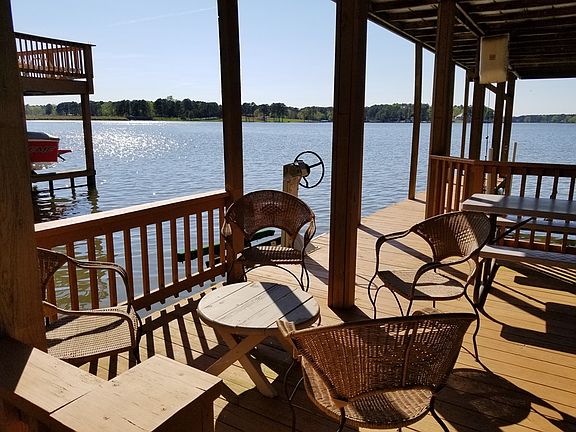 On Pea Hill Creek,close to a Marina and to the main lake! This well kept low maintenance 3 bedrooms,2.5 baths home with ceramic tile floors along with new laminated flooring as well. Main level master has en suite bathroom with jetted tub, and shower, a large living room. and dining room which is open to the kitchen and waterfront covered porch. Great for outside entertaining or just taking it easy. Fully equipped kitchen with large breakfast bar, tile floors, lake views. Upstairs, there are 2 bedrooms, TV lounge area and a full bath. The main level, has a half bath off of the laundry area that also accesses the covered porch and grill .Garage currently being used as a large game room. Large parking area and a easy walk to the pier, lift and sundeck Great water depth, fantastic expansive views of Pea Hill Creek! Fire pit for night time enjoyment. The home has a great rental history!