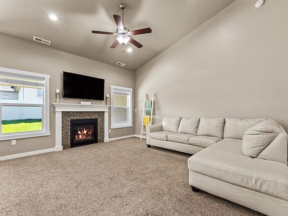 Assumable VA loan. Are you searching for a home near a GOLF COURSE and a LAKE?! You won't want to miss this 3 bedroom gem that includes a den in south Nampa. This corner lot home is in central Nampa close to plenty of amenities including Redhawk Ridge golf course, stores, and restaurants. Inside the home, discover the open-concept floor plan, and vaulted ceilings. In the kitchen, you’ll find quartz countertops, wood floors, and all-new stainless steel appliances. Moving into the living room, cozy up on the couch in front of the fireplace, great for those cold evenings. In the luxurious master bedroom, enjoy your walk-in closet, tiled shower, and dual vanity sinks, perfect for busy mornings. Outside the home, the fully landscaped backyard features a covered patio, great for entertaining. And, don’t forget about your two-car garage, which has new epoxy flooring, and has recently been painted! If you’re looking for a home in a convenient location with all the best upgrades, reach out for a showing today.