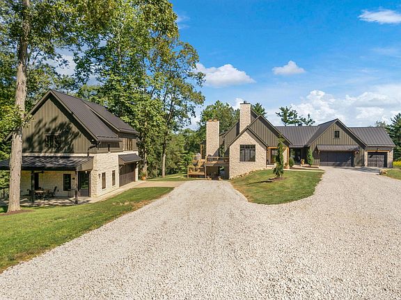 EXCEPTIONAL- Modern Farmhouse Relaxed Luxury Estate boasts 10.95 wooded acres with sprawling main house and guest quarters. Spacious gathering areas seamlessly connect to a luxurious kitchen, equipped with high-end appliances. Grand scale outdoor entertaining spaces with a two-story stacked stone fireplace and panoramic views. The main floor offers a relaxing master suite with custom marble bath. Additional first floor bedroom with en suite bath and loft space. Full walk-out lower level features radiant heat floors, generous workout area plus two large bedrooms joined by a custom Jack & Jill bath with walk-in shower. Pet prep area with dog bath is a delightful addition. Private guest quarters with full kitchen, full bath and parking. Minutes from downtown Johnstown and New Albany