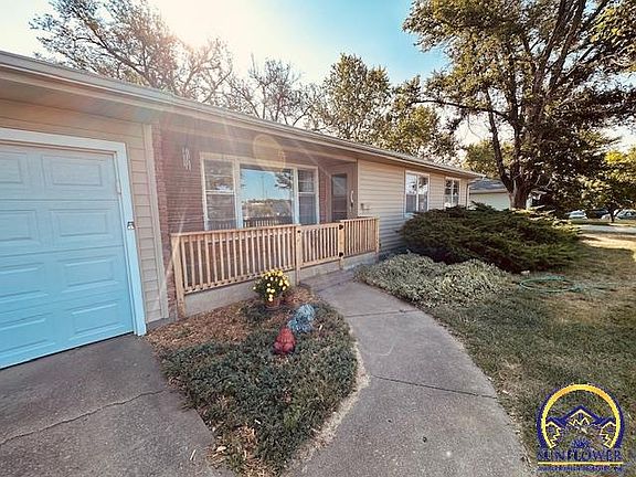 Well maintained Topeka West Ranch with 3 Bedrooms 2+ baths and bonus room that is move in ready! Large living room with built in shelves opens up to dining area. Newer vinyl siding, gutters & leaf guards, new paint, new toilets in both upstairs baths, & new shower in the guest bath. Kitchen includes appliances and has new garbage disposal. Large rec room in basement with beautiful knotty pine walls with a party atmosphere including retro tile & bar area. Also, in the basement a bonus room and a large laundry room with shelving and plenty of room for storage. Oversized two car garage, large backyard with established trees and storage shed. Located close to schools, shopping, dining and entertainment. You won't want to miss it!