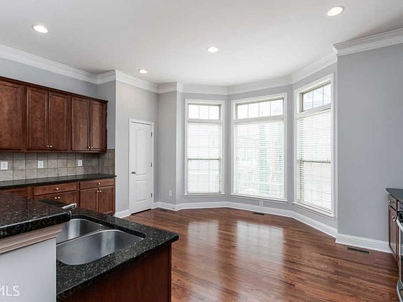 - Kitchen Features: Breakfast Bar, Cabinets Stain, Pantry, View to Family Room, Stone Counters, Breakfast Room, Solid Surface Counters