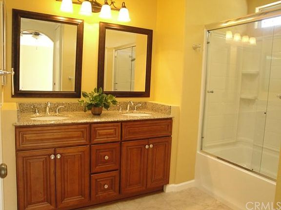 THIS IMMACULATE 2 STORY SALT WATER ROCK POOL HOME WAS COMPLETELY REMODELLED RECENTLY. YOU'LL SEE NEWER PAINT, HARDWOOD AND PORCELAIN TILE FLOORS THROUGHOUT THE WHOLE HOUSE. BATHROOMS HAVE NEWER GRANITE COUNTERTOPS, VANITIES, SINKS, FAUCETS, LIGHT FIXTURES, MIRRORS AND SHOWERS. THE KITCHEN HAS GRANITE COUNTERTOPS, GLASS FRONT CABINETS W/LIGHTS AND STAINLESS STEEL APPLIANCES. THE FAMILY ROOM HAS A COZY GRANITE FIREPLACE AND TOGETHER WITH THE KITCHEN HAS AN UNOBSTRUCTED VIEW OF THE POOL, SLIDE & SPA. THERE IS 1 BEDROOM, 1 BATH AND A LIVING / DINING ROOM COMBO WITH CATHEDRAL CEILINGS DOWNSTAIRS. THE HUGE MASTER SUITE HAS TWO WALK-IN CLOSETS, A BATH WITH HIS AND HER SINKS AND A BALCONY OVERLOOKING YOUR PARADISE LUSH BACKYARD AND A GOOD VIEW OF THE MOUNTAINS. YOU'LL FIND A SPACIOUS LOFT UPSTAIRS OVERLOOKING THE QUIET NEIGHBORHOOD PARK WHICH IS JUST OUTSIDE YOUR FRONT DOOR. THERE ARE CEILING FANS W/LIGHTS AND HARDWOOD FLOORS IN ALL BEDROOMS. THIS HOME IS CONVENIENTLY LOCATED CLOSE TO SHOPPING, (COSTCO, WALMART, HOME DEPOT, ROSS, ....ETC.) RESTAURANTS, (MIMI'S CAFE, CHUCK E CHEESE, ...ETC.), GOLF COURSES AND BOTH 91 & 15 FREEWAYS. OWNERS PAY FOR LAWN AND POOL MAINTENANCE . A MUST SEE