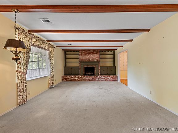 Handsome as can be! From it's stately position atop a gorgeous lot, this handsome home overlooks a beautiful street in Hillcrest Heights. The great curb appeal draws your eye to the tasteful sandstone walkway leading to the covered front porch. You'll love the unique layout of this home with 2 truly separated living areas, plus sunroom or office space..and 2 separate dining areas, as well! Formal living room has cozy beamed ceiling and gas log fireplace flanked by bookcases. Formal dining room has original hardwood floors, and view of the beautiful backyard. Centrally located kitchen has updated cabinetry and corian countertops. Kitchen has large opening to Den, connecting the two spaces nicely. Breakfast nook off kitchen leads to the super sized Den with abundance of windows, a wet bar with storage cabinets, and engineered wood flooring. Primary bedroom has ensuite bath with updated shower. Back deck has 3 areas from which to enjoy the beautiful outdoors and mature trees.