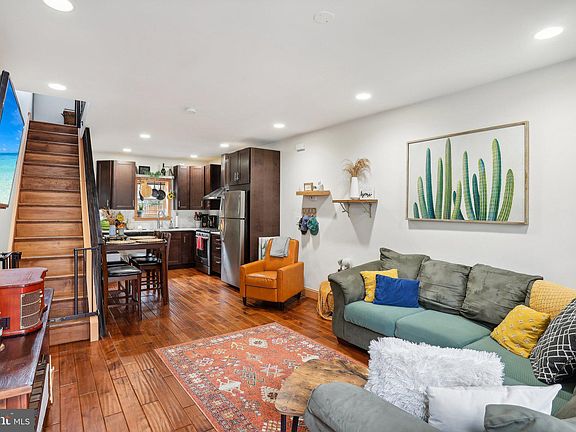 Presenting a beautifully renovated 2-bedroom, 2-bathroom residence in the sought-after Point Breeze neighborhood of Philadelphia. This modern home is adorned with hand-scraped hardwood flooring throughout. The first floor features an open-concept layout and an eat-in kitchen, fully appointed with dark wood cabinetry, Carrera marble countertops, a subway tile backsplash, and stainless steel appliances. The kitchen provides access to a spacious back patio, enjoying bright southern exposure ideal for container gardening. Ascend the stairs, accentuated by a stylish wrought iron banister, to find two bedrooms and a well-appointed bathroom. The fully finished basement offers additional living space, complete with a full bathroom and a laundry area. Located just south of Washington Avenue, this home is in close proximity to numerous excellent restaurants and provides convenient access to University City, Center City, and the Avenue of the Arts. Schedule your appointment today!