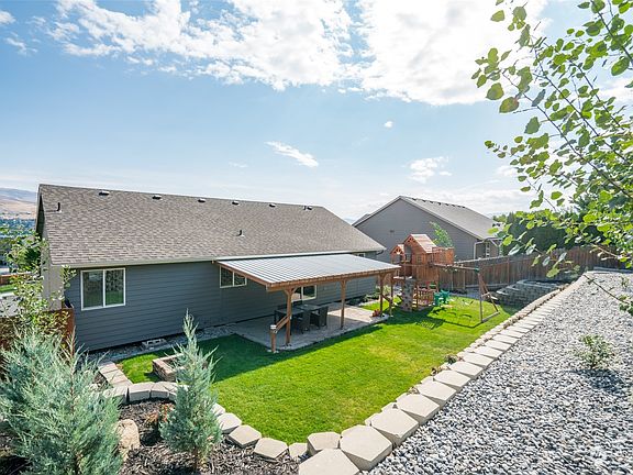 LOCATION-mtn/river views! LOCATION–Sunnyslope Elem! LOCATION–irrigation w/sprinklers! Breathtaking 4 bed/3 bath home in north Wenatchee with tens of thousands in recent updates including new kitchen granite/tile, stunning new light fixtures, beautiful hardwood stairs, lvp flooring, modern faucets/hardware, granite in owner’s en suite bath, elec fireplace, impressive wood beam accents, vaulted ceilings, new paint in and out! Stainless appliances; covered paver patio; private, fenced backyard; landscaped terraces; fire pit. Watch Riverfront annual fireworks from the picture window in your family room. Extra lower-level living space, storage or work space in oversized garage. Inspection complete and one year AHS home warranty provided.