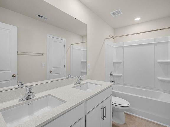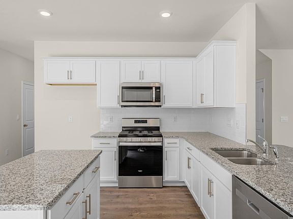 The Wilmington plan is 2,824sqft. The Wilmington plan features 4 bedrooms, 2.5 baths, and a 2 car garage. It offers a living area/optional office and an oversized kitchen with and island & breakfast bar that overlooks the great room. The kitchen features granite countertops, white ceramic tile backsplash, stainless steel appliances, gray cabinets, and a large pantry! The formal dining room allows a great space for enjoying company and entertaining guests. Durable RevWood Flooring is located throughout the main areas in the home that offer elegance and extreme durability. Upstairs you will find the primary bedroom plus 3 large bedrooms with walk-in closets and a loft! The primary bedroom is spacious with vaulted ceilings and an impressive walk in closet! The primary bath features dual sinks and a large shower!