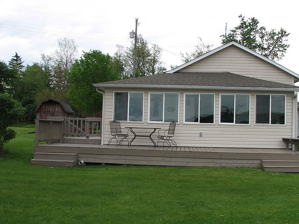 PRICE REDUCED!!! Open, airy cottage on Lake Manitou features 2 bedrooms, 1 bathroom, wraparound deck, Sun Porch, large 2 car garage, and .29 acre lot across the street. Newer seawall, roof, siding and furnace. Most furnishings can stay. (Pontoon boat with 70 hp four stroke engine, wave runner/lift, and riding mower are available for purchase separately).