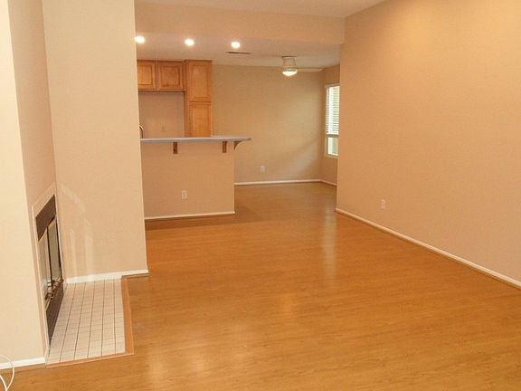 Spacious single-story, ground level, end unit condo with 2 bedrooms and 2 bathrooms, located in the Serrano Sandcastle Community. Freshly painted, A/C, hard flooring, and canned lighting throughout. Kitchen features gas cooking, dishwasher, microwave, breakfast bar, eating area with ceiling fan, and pantry closet. Living room with cozy fireplace. Hall bathroom with vanity and tiled shower stall with natural rock floor. Stacked washer and dryer tucked away in hall closet. Master bedroom with oversized mirrored closet doors and attached private bathroom with vanity and shower/tub combo. Slider door off master bedroom opens to enclosed patio with two storage closets. Unit comes with 1 assigned covered carport (#9) with locking cabinet for more storage. Community spa and kids play area. Water and trash included.