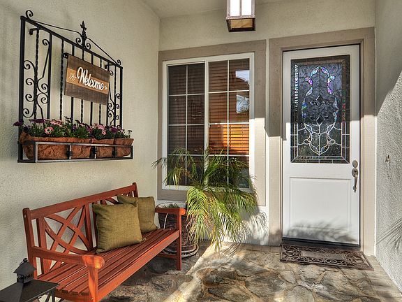 Experience warmth, comfort and sophistication as you enter this wonderful and rare four bedroom, three bathroom, single level, Robinson's Ranch home, with formal living and dining areas. Captivating high ceilings with deep crown molding and designer touches lavish this home throughout. The huge gourmet kitchen with granite countertops, center island & pot rack with generous cabinetry space opens up to a light and bright breakfast nook and family room equipped with a gas fireplace, making this a perfect gathering spot for movie nights. Enjoy the sight and sounds of the waterfall and pond from your private patio and backyard which backs up to panoramic views of the natural wilderness and lush mountain sides. The large master bedroom suite also with mountain views and patio access has a luxurious bathroom with soaking tub and an oversized walk in closet that will not disappoint. The 4th bedroom has been converted to an office with beautiful, rich, wood, custom cabinetry. Award winning schools, great community amenities and popular local restaurants & shops are all located close by. Don't miss out on this special gem.