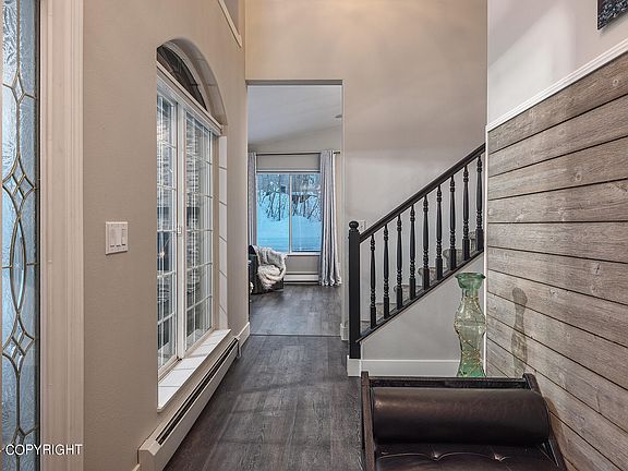 Extensively remodeled 2 story craftsman tucked away on a culdesac location. Almost a full acre lot in Chugiak with convenient access to the highway, shopping, and trails. Some incredible features of this stunning home are the well thought out landscaping, the outdoor living areas and the main floor layout! The main floor features 2 living rooms, kitchen built for entertainment and owners ensuite.All appliances stay and this home is truly turn key. Newer flooring throughout. In immaculate condition. Yard is fully fenced. The landscape is loaded with perennials, new trees, terraced retaining walls and a large rear lawn. There is a large office on the 2nd floor in addition to the secondary bedrooms. Currently the 3rd and 4th bedrooms have been combined to make 1 large room with it's own private theatre (protector included with sale). Large RV parking area, 50 amp RV plug and 50 amp electric car plugin. Do yourself a favor, come see this home and don't let this opportunity pass you by!