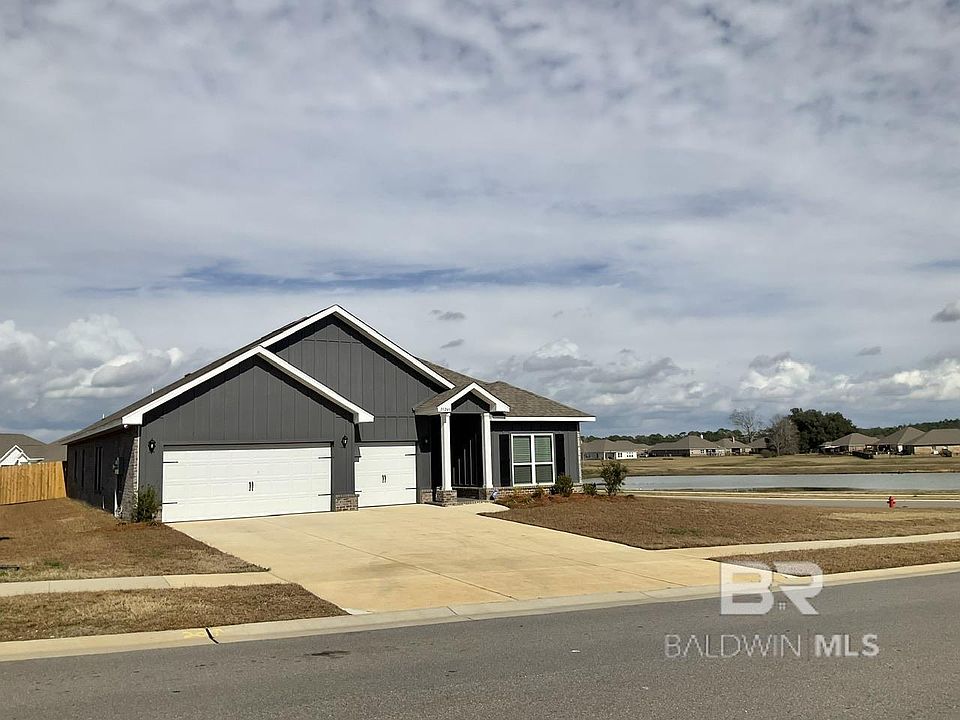 This popular Camden floorplan is just 10 months young and on a large premium corner fenced lot offering panoramic views of two lakes and community pool in sought after Fairhope neighborhood. In addition to the homes many features, the Camden floorplan is highly desired for its bonus living room that features built in cabinets, granite counter tops, a sink and convenience frig, with its very own private bedroom, full bathroom, and spacious walk-in closet. So many ways this great space could be used: home office, game room, private guest suite, in-law suite, nanny suite. This Gold Fortified Smart Home has 4 large bedrooms, 3.5 bathrooms, formal dining room, breakfast room, eat at bar with amazing views all on a premium lot. Owners will enjoy easy care luxury vinyl plank floors throughout, gourmet kitchen, granite countertops, custom backsplash, soft close cabinets, trey ceilings with crown molding, 9-foot ceilings throughout, blinds, fully fenced large yard that is move in ready. The primary bedroom is a true retreat with its private bathroom that has double vanities, a separate shower, soaking tub and walk in closet. Across the home is a Jack-N-Jill bedrooms/bath combo with oversized countertop and double vanity sinks. A bonus half bath is off of the main living area and perfect for guest. The laundry room is oversized and centrally located. The home backs up to a to common space with a large back patio, the 3 full size car garage offers abundance parking or storage. Enjoyment is easy find at the 2 community pools, playground, walking trails, on Fish River or fishing at one of the 3 lakes, movie nights, 4th of July Golf Cart & Dog Parade, New Years Fireworks and lots more! With so many great features this home is a rare gem! AWInformation deemed reliable, not guaranteed, buyer or buyer's agent to verify.