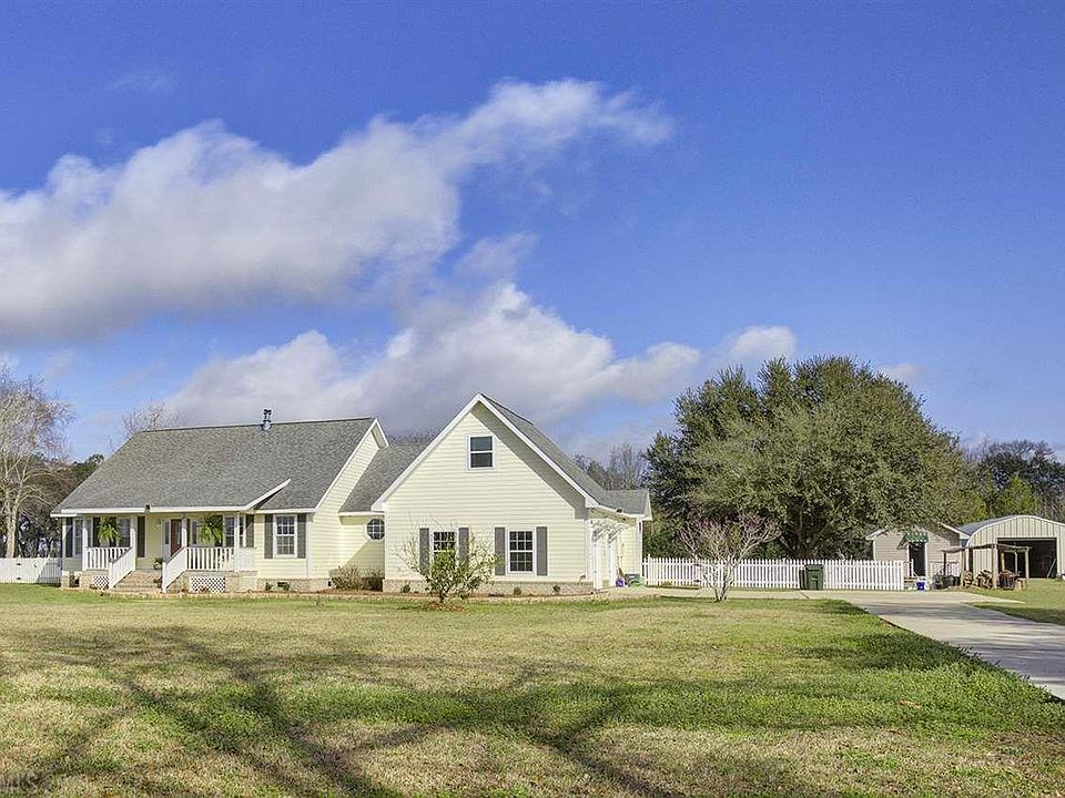 This lovely 2700 square foot home sits on 2 acres that overlook a beautiful pasture. It comes with a 50 x 20 metal barn, perfect for all the big boy toys. This is a split bedroom plan with a large open great room as the heart of the house. Entertain friends and family gathered around the warm wood burning stove. There are plenty of options for an in home office and it has a separate dining room that could convert into a den or living room. This house has been very well maintained and has been updated with stylish comfortable feel. The entire main level is carpet free. You will feel like you've walked into a spa when you enter the master bath. It has a separate soaking tub, a stone and tile shower, and a walk in closet, and double vanities. The large screen porch has been converted into a relaxing inviting space with outdoor dining, a sitting area, and even a hammock. The yard is fenced and has a variety of fruit trees, grape vines and seedless blackberries bushes. Come plant a garden and raise some chickens. If you're looking to be out of the hustle and bustle of the city yet minutes to jump on I-10, then this is your home.