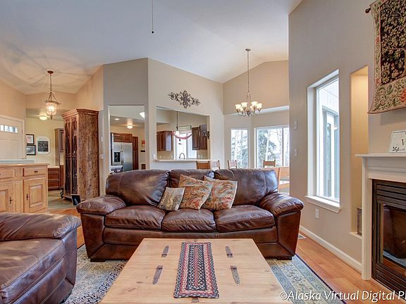 This beautiful four-bedroom home is located near hiking trails and situated on a big .94 acre lot! The kitchen provides tons of storage & is open to the living space. The master ensuite, second bedroom, & office are located just off the main living area. The finished walkout basement has two bedrooms, a second living space, AND a bonus room. RV parking & privacy, but only minutes from town/JBER!