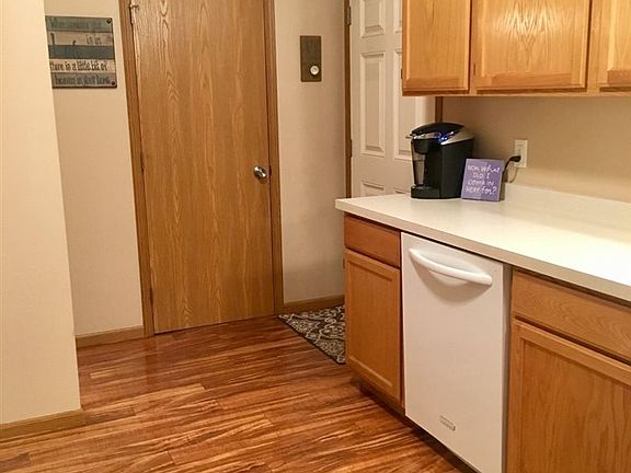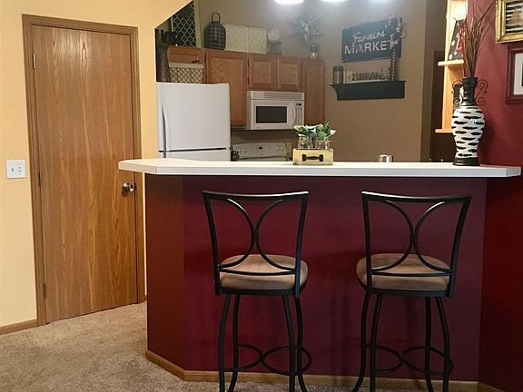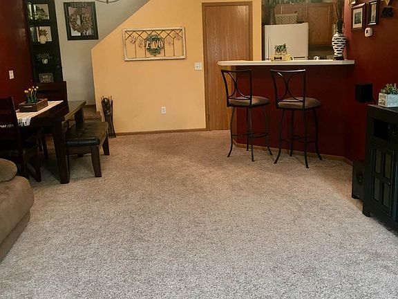 The open floor plan of this condo is very inviting. The main floor features the living room and dining area with carpet. The sellers installed a higher end laminate in the kitchen and a tiled backsplash. They updated the dishwasher, garbage disposal, water heater and main floor carpet since purchasing the condo They also installed surround sound, all you need is speakers! There is storage under the steps that lead upstairs. There you will find a nice laundry room with cabinets and the washer and dryer stay; a full bath and two bedrooms. Master has a walk-in closet. The garage is sheet rocked, insulated and heated. The shingles were replaced in June 2019. Out front is a patio that faces nice grass and mature trees across the parking area. Close to shopping, banking and the by-pass.