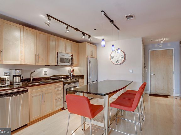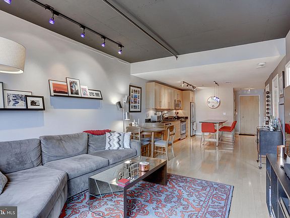 Welcome to this expansive one bedroom plus den that offers stylish living in the premier Flats at Union Row Condominium. Garage parking is included! Located on a desirable higher floor, this unit spans over 850SF with a modern, open floor plan that has the flexibility of a two bedroom. The living space feels bright and airy with 9~+ ceilings and an abundance of natural light from a large triple window. The kitchen features granite counters, stainless steel appliances and an island that doubles as a breakfast bar. Hardwoods throughout, industrial elements and art lighting all enhance the space. A full size washer/dryer is included, and the newer HVAC system with Nest thermostat are additional upgrades for energy efficiency. The bright master bedroom has double windows, a built-in Elfa closet system and en-suite Porcelanosa bath with large shower and glass door. The spacious den works well as a guest bedroom or home office, can be closed off with a sliding door for privacy and has easy access to the second bath. A custom installed wall shelving unit and flat screen TV in the den convey and are set up for immediate entertainment. Union Row is a truly full-service building offering abundant amenities, including 24 hour concierge, newly renovated lobby and meeting/lounge space as well as a common outdoor terrace just one flight away from #722. (Pets are also welcome.) The project achieved multiple awards for its premier design and became an anchor for the dramatic revitalization of the area. The location is exceptionally convenient with Yes! Organic Market and CVS right within the complex and U St Metro, Trader Joe~s, and a host of other neighborhood hot spots within steps. Live in a prime location that captures the energy of 14th & U St Corridors ~ the ultimate in sophisticated urban living in the hippest part of DC!