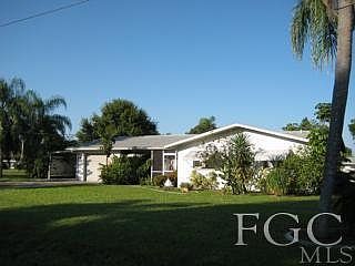 This is a Short Sale subject to existing lender's approval which could result in delays. The current price change to $150,500.00 is a bank approved price as of 03/20/13 and is a firm price. Home has 105' deep water frontage with concrete bulkhead and dock with lift and davit on canal off Caloosahatchee River. There is an abundance of storage space with three out buildings all with concrete slabs; approximate measurements are 12X10 enclosed storage, 20X20 enclosed Metal Bldg., and 12X20 open side covered van or boat storage. Porches need new screen, interior needs repair, and possible update. Sold as is. Offers must include financing pre-approval or proof of funds for cash. Brokered And Advertised By: Prudential Florida Realty Listing Agent: Thomas Young Lovern