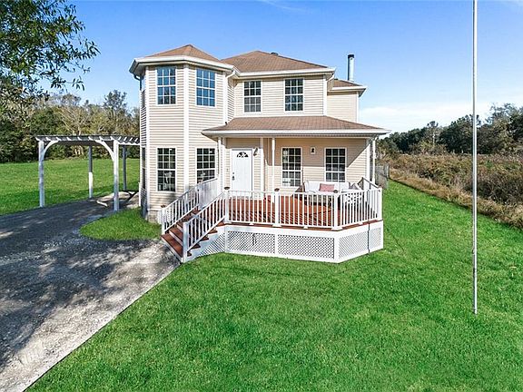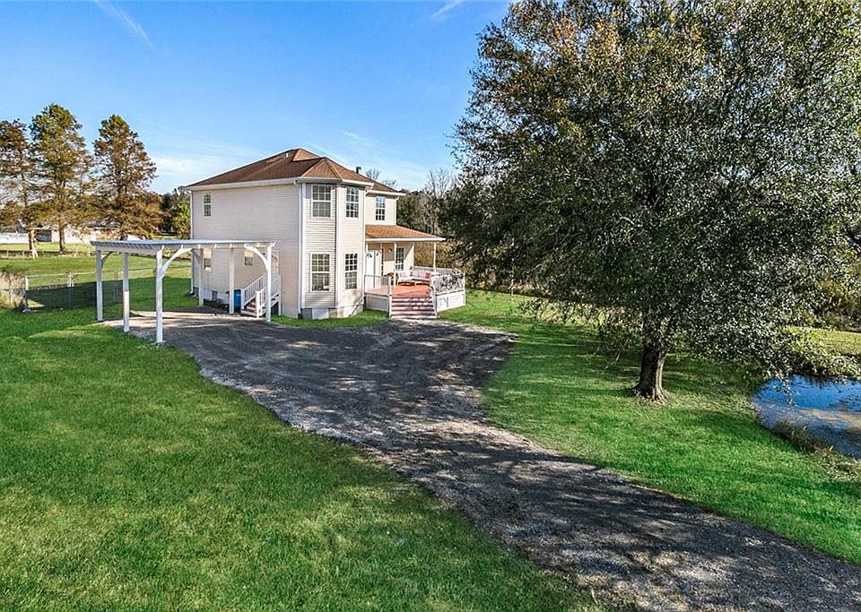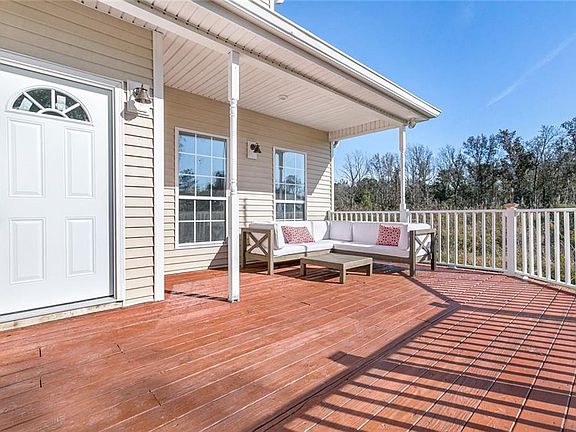 Gorgeous Victorian Country Home! This 4 Bed, 3 Bath southern charmer features spacious living room w/ electric fireplace & custom cypress mantle. LifeProof Vinyl floors throughout in a Rustic Oak finish.Kitchen features granite counter tops, soft close cabinetry, Recessed Fridge & large pantry. Master features a unique sitting room off the bedroom with lots of natural light. Ensuite bath with custom tile shower. Front and rear porches, custom pergola carport. (Pond is owned by neighbors, photo to show view)