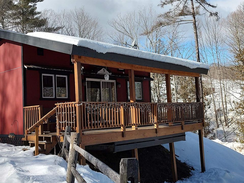 Year round cozy 2 bedroom, 3/4 bath cottage, with newer well and septic. With a large welcoming covered deck to sit and listen to the babbling brook. 2 additional out buildings, one has been completed and could be used as a hobby shed or could be used as a separate bunk house. The other awaits your finishing touches or could continue to be used for storage space. This property could be used as your vacation getaway or year round residency. Delayed Showings until February 23, 2023.