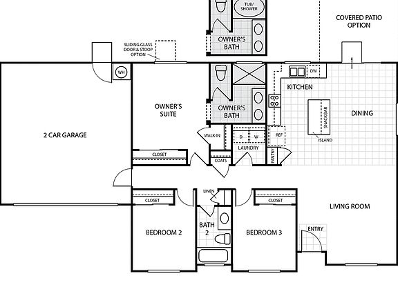 This Cypress home is 1,297 square feet, single story, 3 bedrooms and 2 bathrooms.. This quality-crafted home features a Mediterranean styled exterior design with inviting carriage lights, charming front porches, an optional covered patio and more. On the interior of the home, you will find standard features such as spacious 9-foot ceilings, tile flooring at the entry, dining, kitchen, baths and laundry room, walk-in closets at the owner's suite, Whirlpool® stainless steel gas range, microhood, and dishwasher, and a brushed nickel trim and hardware package. Call the sales office to find out more about this plan's availabilities and ways you are able to customize it. This home is located at Kensington in Northeast Tulare. Kensington is conveniently located near the Tulare Outlets and South Visalia shopping centers.