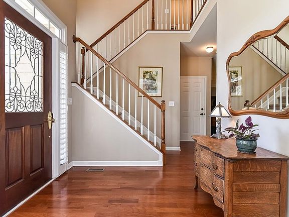 Move-in ready! Adorable 4 bedroom, 2.5 bath home is ready for YOU! 2-story entry foyer, living room & dining rooms, well-lit w big windows, Plantation Shutters. Kitchen feat view to family rm, granite, pantry + access to deck. Fireside family room. Enjoy breakfast in kitchen or on deck, view of woods + creek. Hardwoods thr-out main. Upstairs, owner's suite boasts spacious walk-in closet, bright & open bath, double vanities, separate tub & walk-in shower, w a private water closet. The laundry is also located upstairs, for your convenience. Fin terr level is beautiful!
