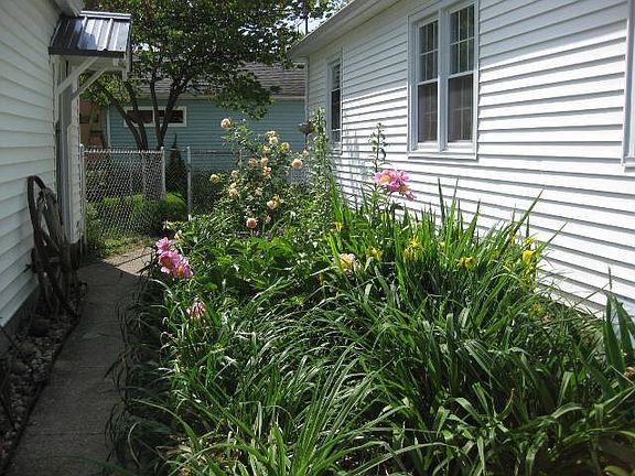 This home has large living room with fireplace and hardwood floors, eat in kitchen, full basement, covered front porch, detached 2 car garage with workshop, fenced back yard with beautiful landscaping. New metal roof in 2018, city gas and central air. Convenient location on large corner lot.