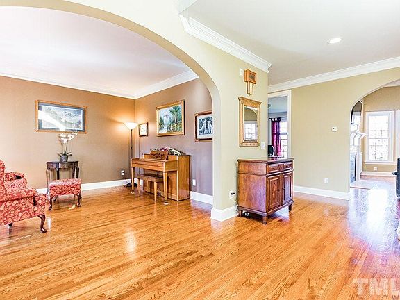 Custom One Owner Luxury All Brick Home Beams With Quality! Curved Wall of Windows Overlooking Private Buffer from 3 Levels! 1st Floor Guest Suite! Rich Hardwoods. King & Queen Suite: Sitting/Office & Workout/Yoga Rooms, Bath-Jacuzzi & 2 Dressing Areas. 2nd Floor Bonus. Basement: Bar, New Steam Shower,Theater & Recreation Room Wired for Projector & Sound. Energy Efficient! Over-sized Garage/ Charging Station. Best Schools! Parks! Trails! Community Club & Pool! Prime Cary Location! Families Love Glenkirk!