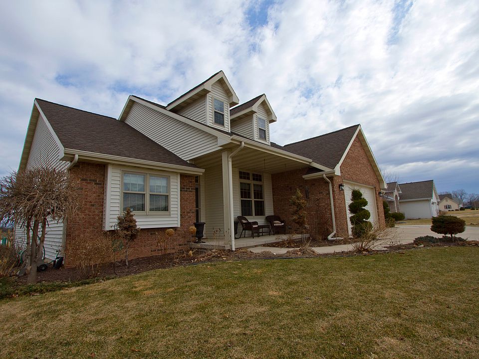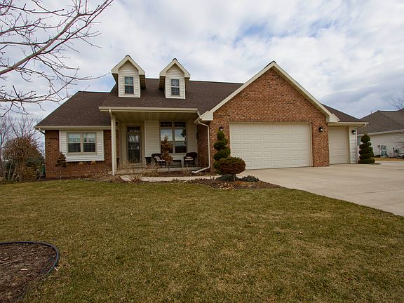 spacious split bedroom home located in ledgeview subdivision. home features 4 bedrooms, 3 baths. Tray ceiling in master bedroom, walk in closet & newly remodeled walk in tile shower. Nice center island in kitchen with maple cabinets. Fully finished lower level with exposed windows throughout, and beautifull bar area. Large refinished deck overlooking back yard and additional 28x32 finished work shop. Attached and detached garage with heat.