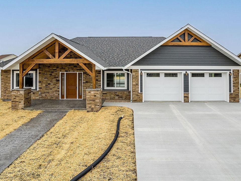 THIS IS NOT A COOKIE CUTTER HOME! Fabulous floor plan & finishes are yours in this 3BR/2BA home. Constructed using innovative Insulated Concrete Forms for an efficient, quiet & super-strong place to call home. Gorgeous kitchen w/granite countertops, subway tile back-splash, walk-in pantry & Amish cabinetry. Super-sized primary bedroom w/tray ceiling & private bath that has a dual vanity & a tiled step-in shower. HUGE walk-in closet w/built-in organizers, drawers & hanging bars. Two additional bedrooms w/large closets & ceiling fans. Inviting & relaxing living room. TALL vaulted Ceilings. 2+ car heated garage thats ready for you to plug in your electric car and offers extra storage space. Stunning timber frame accented front porch & patio. MANY features you will LOVE.