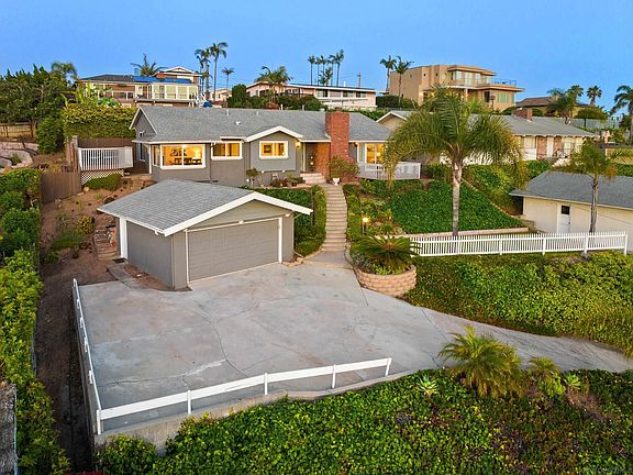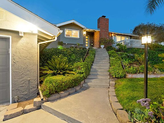 This Bay Park stunner delivers spectacular panoramic views of the Pacific Ocean, Mission Bay and Pacific Beach, from Sea World to Mt. Soledad. The home was fully renovated in 2011 with new kitchen and baths, 200-amp electrical panel, all new dual pane windows and sliding doors, and more. Upgrades since include new central HVAC system and ductwork, full pantry, gorgeous 3/4” solid job site-sanded white oak hardwood floors, lighting and plumbing fixtures, new water heater, paint, and new 60-amp garage subpanel and EV charger. Move-in ready, open and bright, with vaulted ceilings, two spacious decks to enjoy the sunset and evening lights, and a fenced backyard for kids and pets. Large open kitchen/dining combo with all stainless appliances including pro-style range, added built-in storage and pantry, and spacious living room with fireplace and plantation shutters. An elevated position above the street provides added privacy and incredible breezes. The two-car detached garage is wired for EV charging and there is room for additional parking in the driveway. Make this beautiful property your new home today!