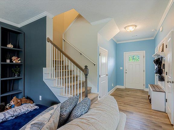 **PRICE REDUCED** Updated well kept home in grove Landing! This 4 bedroom 2.5 bath home is a gem. A welcoming foyer leads you into the open concept living area, featuring beautiful shelving that stays with the property. A bright and airy eat-in kitchen with bar seating, granite, and stainless appliances is sure to impress. Upstairs the 4 bedrooms are nicely sized, two full baths upstairs and the half bath is on the main level all with solid surface countertops. The owner's suite features a tray ceiling, large en suite with dual vanities, oversized tiled shower with dual shower heads, and a large walk-in closet. The laundry room is upstairs, convenient to the bedrooms. The backyard is fully fenced, with an extended paver patio, and a firepit that stays with the property.