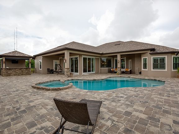Custom built 4 bedroom, 5 bath home, + an office with built-in cabinets, and pool with spa on over 4.5 acres. 2 car attached garage. 4 car detached garage features 2 more bedroom, 1 bathroom, game room, and large storage room. Double door entry, tray ceilings, 10' doors, 12' ceilings, tile throughout. Formal living and dining rooms. Center island kitchen with breakfast bar overlooking huge family room with coffer ceilings, and breakfast nook. Walk-in pantry with sine refrigerator and custom cabinets. 48" built-in refrigerator, double ovens, and 5 burner propane cook top. Huge master suite with sitting area and his and her walk-in closets. Master bath offers double sinks, vanity, double showers, steam shower, and private water closet. Summer kitchen includes 56'' grill, side burner, refrigerator, and double sink. Mosquito control system. Private soccer field and horseshoe pit. Horses welcome. Lot can be subdivided