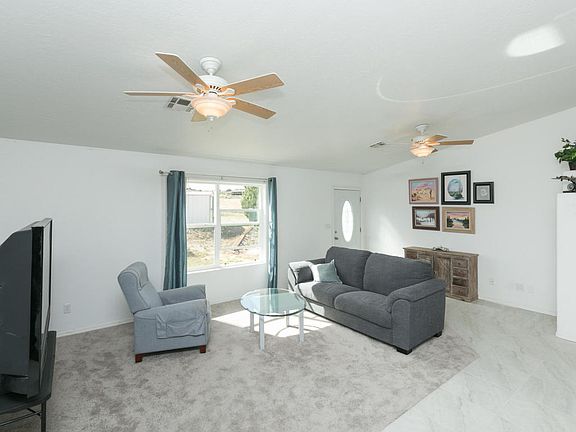 HUGE PRICE DROP! Country living at its finest. Enjoy the wide open spaces with panoramic views on this 1.34 acre property. 1680 SF home kept in excellent condition and a 2 car detached garage. 3 bedroom, 2 bath, split floor plan. Newer tile and carpeting in this very well maintained home. Master bedroom has a jetted tub and separate shower. 2 sheds on the property for extra storage and pen for the animals. Perimeter fenced with an electric gate. Last well test was tested at 12 gpm. This one is move-in ready.