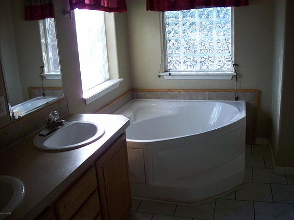 Spacious 4 bedroom, 2.5 bath, large living room with wood corner fireplace with brick hearth & built-in bookcase. Dining, kitchen, laundry. Master bedroom with extra Lg bath includes garden tub & separate shower, double vanity,, and walk-in closet. Split bedroom plan with Jack-n-Jill bath between BRs 2 and 3, 4th BR with 1/2 bath across hall. Lg laundry room w/access to Lg.(36x16) covered rear deck. Developed rear yard with grass, garden area,shade trees, fenced. Plenty of room to park autos, RV, or other projects. Property is zoned OK for horses, and room to add facilities, not presently developed. Large storage room adjacent to one end of house. All paved roads, nice neighborhood of similar type homes.