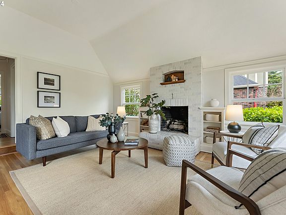 Be enchanted by this classic 1931 Tudor nestled in Portland's beautiful Rose City Park neighborhood! The classic layout of a home from this era features a sunken living room with fireplace and built-ins, traditional steep pitched roof creating beautiful high-ceilings and light in the living room. Gleaming original hardwood floors and leaded glass windows that flood with natural light, maintaining the home’s 30's charm. Two bedrooms and one bath on the main, with a third bedroom upstairs and an office/flex space attached. Tons of storage throughout! Updated windows! The basement offers extra storage or recreational space to be finished to your liking. Private yard with a slider out to the spacious back deck with mature trees, and a lush garden – ideal for entertaining or relaxing in your own peaceful retreat. Other updates include new sewer, new windows, & A/C! Rose City Park & Golf course is right across the street offering tennis courts, a soccer field, playground, walking paths, and more. Easy access to public transit, food carts, and the highway for getting around town with ease. OPEN SATURDAY 10/19 12-2PM & SUNDAY 10/20 1-3PM [Home Energy Score = 1. HES Report at https://rpt.greenbuildingregistry.com/hes/OR10233767]