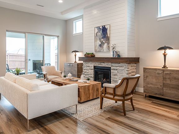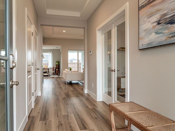 Classic architectural features and a primary on the main layout are hallmarks of the stunning Sage plan. At 2,272 square feet with three to four bedrooms and two and a half baths, this contemporary two-story floor home lives large and caters to today's lifestyles.Enjoy immediate curb appeal with four lovely elevations from which to choose, each distinctive and full of character. A gracious covered front porch welcomes you home and makes for a comfortable perch to connect with neighbors and watch the kids play. Architectural window awnings, along with the covered porch, increase the home's energy efficiency and keep interiors cooler in the warmer months.The Sage opens to a dedicated entryway with a coat closet and powder room situated apart from the first-floor living areas. Interior detailing, including coffered ceilings, creates lovely character and a welcoming sense of arrival. Purposeful design elements throughout ensure no wasted space in this beautiful and inviting floor plan. A generously sized den just off the entryway expands common living areas benefitting families continuing to spend more time at home. With access to the great room beyond, transform the space into an extended lounge space, media room, home office, or kids' study room. Garage entry is also just off the light-filled hallway, with an optional three-car garage or shop available for even more storage and workspace.
