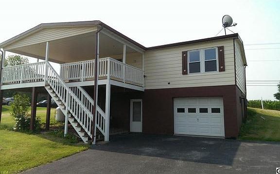 Easy One Floor Living! Almost 1 acre lot. Double wide home has vaulted ceilings, newer laminate floors, Dining Area open to rear covered deck, great for outdoor dining & entertaining. C/A, roof & windows all replaced within 1 years. Paved driveway, garage & 2 large sheds. Immediate possession! Move in ready! Freshly painted on the outside, 1 car garage. Minutes to I-81 interchange.