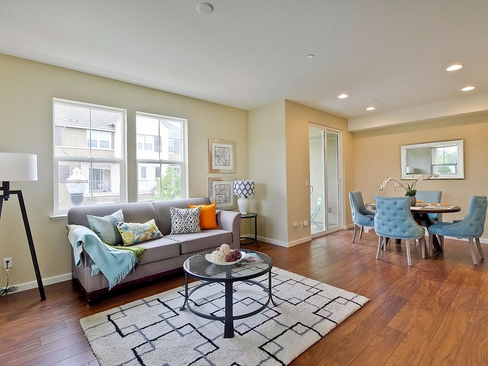 * End unit town home with beautiful brick finishing outside. Original Owner * Update granite counter open concept kitchen in living room level * Bright natural light for living room with two sides windows * Update bathrooms including a powder room for guests in living room level * 2 master suites. One with double sinks and a walk in closet * Attached two car garage. In house laundry room * Great location. Close to shopping including Costco and Ranch 99. Easy commute to high tech firms including Apples coming N. San Jose campus and future Bart Station * Walk to Google shuttle bus * Community has nice amenities including playground and recreation area with barbecue facility. * Low HOA fee.