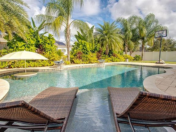 Come see this stunning 5 bed/4.5 bath 2-story pool home in the highly sought after gated community of Wekiva Run. Incredible upgrades inside & out including a spectacular private pool patio & lounge area. Upon entry you are greeted by the warm welcome of living & dining rooms which flank the foyer & offer ideal flex space. Step thru to the inviting & MASSIVE living area with family room, dinette & kitchen. Stunning custom cabinetry & granite counters, all stainless appliances, walk-in pantry and breakfast bar make the kitchen an amazing space to cook and entertain. The kitchen looks out to the family room and dinette with gorgeous views to the back pool patio. A private guest suite downstairs offers comfort for family & friends. Up the stairs is a HUGE loft space complete with wet bar.. A bonus room is currently being used as a home theatre & is the perfect setup for it. 4 bedrooms are on the 2nd floor including the luxurious master suite which can easily accommodate any bedroom set & features dual walk-in closets. The spa-like master bath includes a garden bath, double vanities & glassed shower stall. All other bedrooms are generously sized & have walk-in closets. Step outside to the covered patio & prepare to be amazed by this backyard oasis. The covered sitting area is wired for a TV so relax or jump in the pool (with in-water table & umbrella) & soak up the sun! The 3 car wide driveway creates plenty of parking for friends & family to visit & the community offers a great park area & shaded playground.