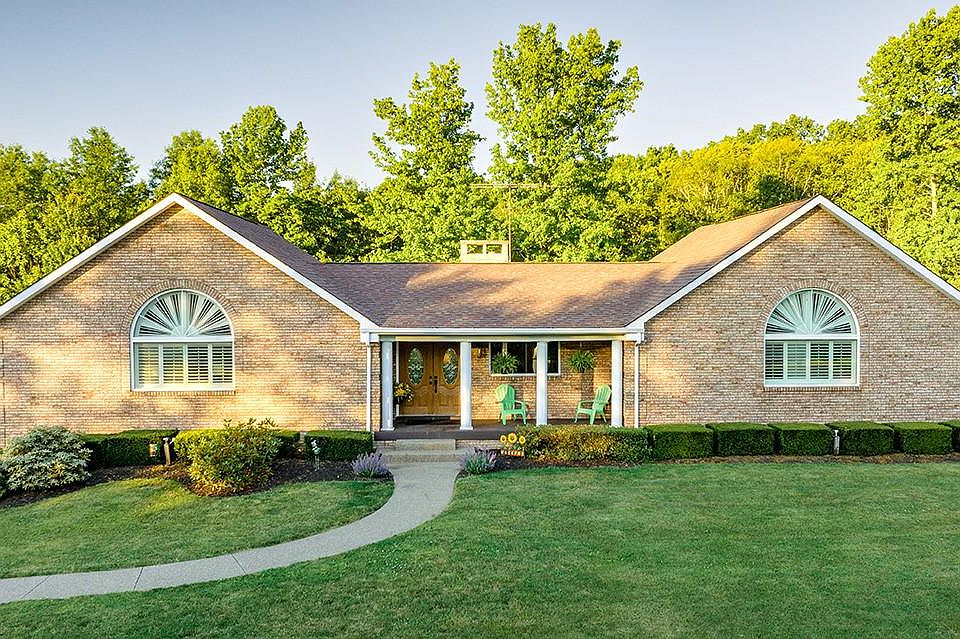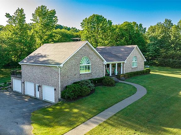 Located just minutes from Moraine State Park, this completely updated ranch home at 2125 Prospect Road sits on nearly 6 acres of park-like land, situated behind 2 tree-lines to provide the utmost privacy. Home offers newly updated kitchen w/ custom white cabinets, accent island, leathered granite counter tops, backsplash, & SS appliances. You'll have plenty of room to entertain w/ 2 spacious family rooms; One w/ wood fireplace & the other w/ tons of natural light. The master bedroom includes walk-in closet & connected access to full updated bathroom. Supplementary bedrooms provide plenty of living area & closet space. New main-floor laundry room, & updated full bath. Spend your evenings out on the back porch overlooking your private oasis, or down below on the patio w/ its own fire pit for cool summer nights. Partially finished basement includes plenty of room for storage & your own office space. Parking is ample 2-car integral garage w/ attached exterior garage. Your new home awaits!