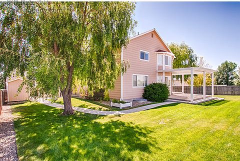 Brand new carpet, newer roof, newer recessed kitchen lighting, newer appliances that stay and newer exterior paint. HUGE master bedroom with gorgeous mountain views, 5 piece master bathroom with walk in closet. Granite counters in kitchen, custom oak banisters and trim throughout, custom concrete walkway in large backyard with patio for entertaining and sun setting shades. Backyard mountain views! Both backyard storage sheds stay. Nearby golf course, hospital and walking trails.