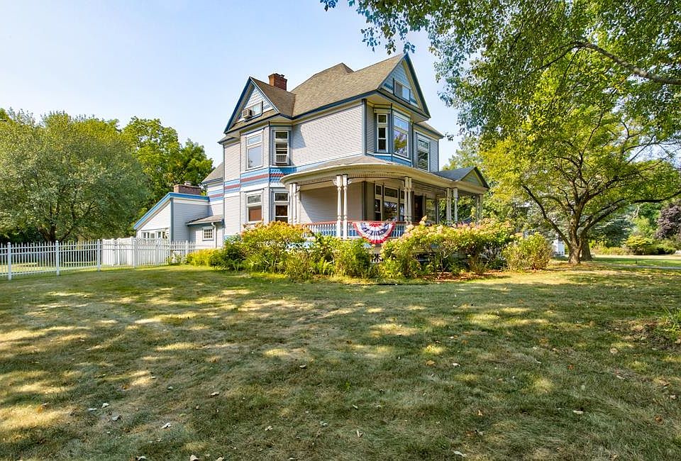Marinette City Riverside Ave historic Queen Anne style home. 3 bed, 2.5 baths & over 3,200 sq. ft. stately on a .73 acre gorgeous lot, fenced in. A part of history with its delightful character, original leaded windows w/ updates of windows, roof & siding. A large four seasons room w/ cathedral ceilings & numerous windows for the serene views of the landscape that includes wildlife. The owner's suite is on the second floor w/ a large bath & additional bonus room. A large amount of storage throughout the home. Full basement w/ daylight windows & finished den. Updated fireplaces and boiler. Two mini splits for air. Detached two-stall garage situated on a massive amount of concrete for additional parking. The lot is encompassed by a beautiful white vinyl fence w/ multiple gates. Enchanting.