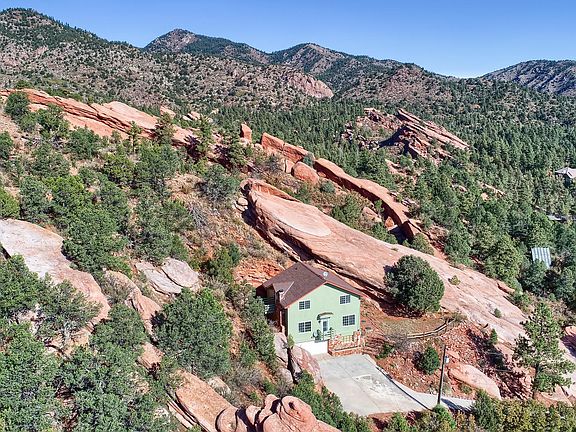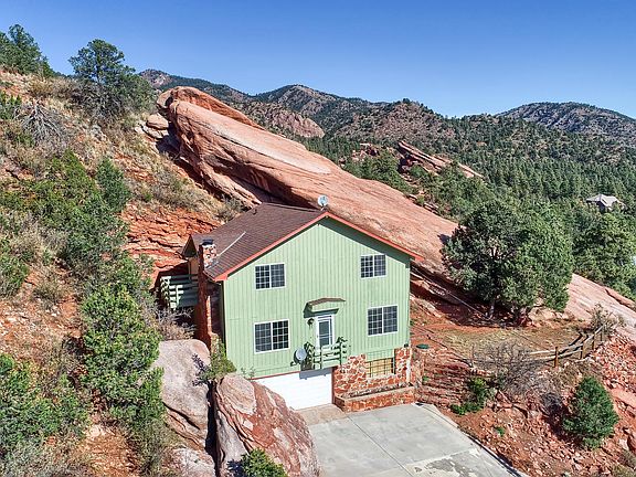 Nestled on over 5 ac in stunning red rock formations overlooking Red Rock Valley, providing exceptional views but only 15 minutes to Colorado Springs. Passive solar with the many windows keeps this home cozy. Spacious living room has great views & rocked fireplace. Lg. kitchen features quartz counters with tons of counter space. Upstairs is the relaxed Owners suite complete with luxurious bath including radiant heat flooring & marble. Additional bedroom has a 13 x 13 closet. Amazing mountain views from every window. Owners suite also features private deck perfect for relaxed evening or morning coffee plus there is option to put in a wood burning stove. Heater cable on the roof. Located in Red Rock Valley Estates with great community water and no covenants. Enjoy hiking on your own red rock landscape or take a moment to view the stars. Abundant wildlife habitat includes deer, turkeys, and even a road runner! Easy access to HWY 115 to Colorado Springs or Penrose & Canon City. For more outdoor recreation Brush Hollow Reservoir is a short distance away. Zoned for horses and has 25 x 25 pad for RV at bottom of driveway.