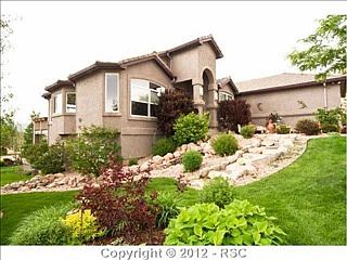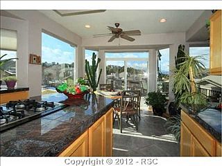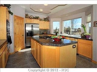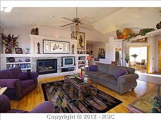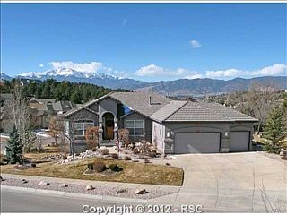 Spacious custom rancher w upgrades galore & unobstructed Pikes Peak views. Main level features a stunning great room w/peaked ceiling, gas fireplace & white oak floors. Entry, hallway & staircase have tiled floors. Dining room w/9' coved ceiling & hardwood floors. Well-designed kitchen w/granite tiled counters, tiled floors, slate backsplash, stainless appliances, maple cabinets w/pullouts and sunny nook w/ deck access.