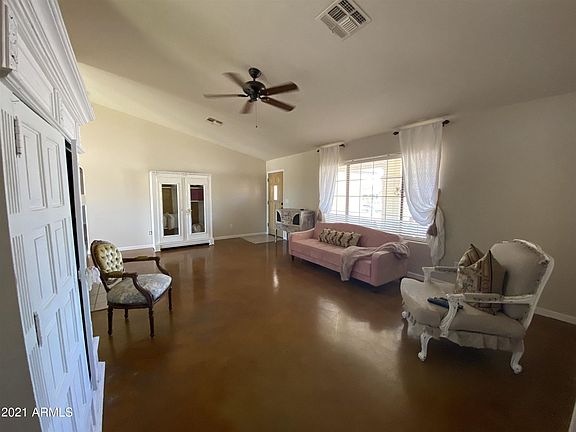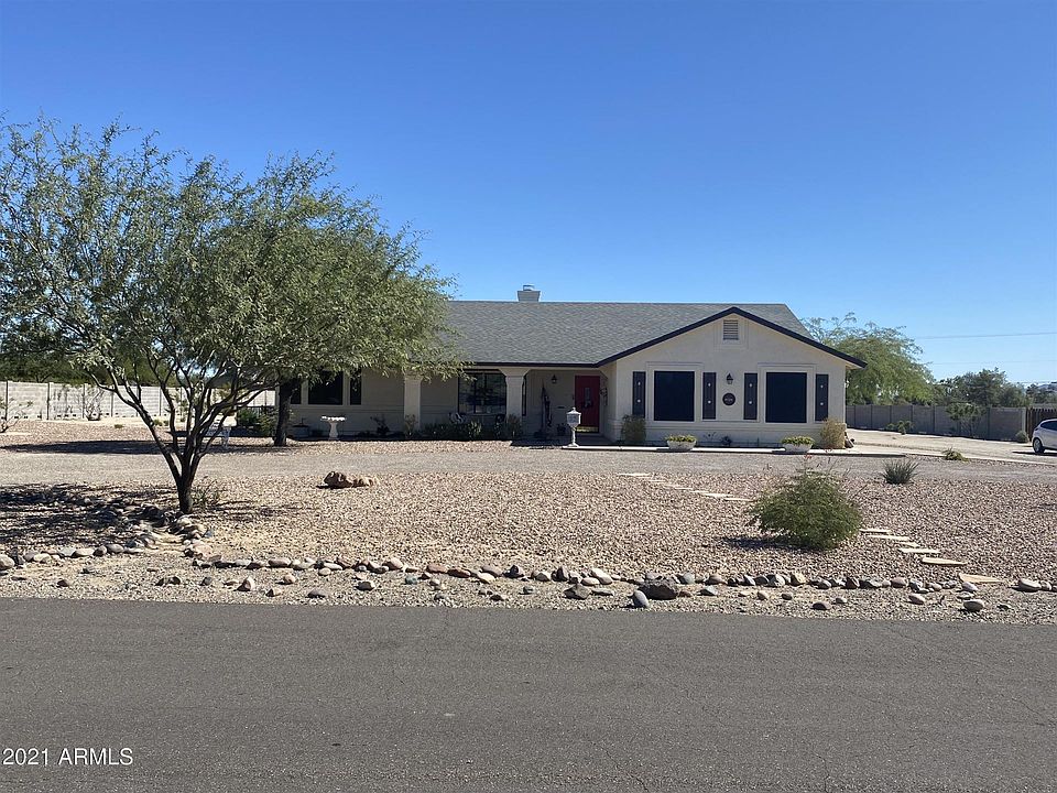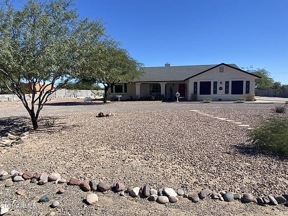 Very special three bedroom two bath custom home on an acre in a very sought after neighborhood in Buckeye. Large open family room, split floor plan, large kitchen with dining area complete with custom lighting, farm sink, pantry and a separate entrance to the beautiful back patio and manicured yard. Master bedroom complete with huge walk in closet, custom cabinetry, separate toilet room and walk in shower. Vaulted ceilings through out home. Large landscaped back yard with wrought iron fencing, grass and a large covered patio to enjoy watching the wildlife on this large lot. Two car garage with side entrance to home. Plenty of additional parking. Very low maintenance landscape. No HOA. Convenient location just minutes from I-10. Come see this gorgeous home today!