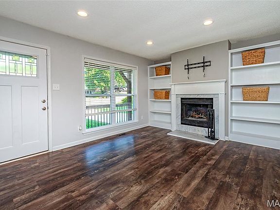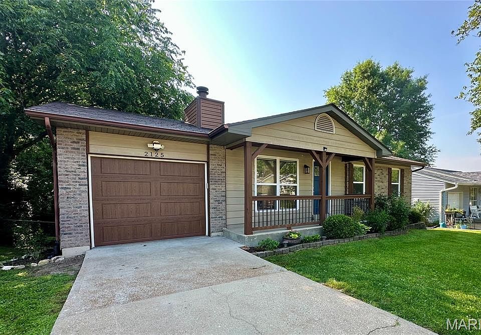 Welcome home to this absolutely adorable 3 bed, 2.5 bath ranch in the sought-after Seckman Schools, Fox C-6 District! From the charming covered front porch to the carriage style garage door with an epoxy coated floor, this home is bursting with curb appeal and thoughtful upgrades. Step inside to a warm and inviting living room featuring built-in bookcases flanking a cozy woodburning fireplace, complemented by fresh neutral paint, recessed lighting, and stylish LVP flooring. The stunning eat-in kitchen is a showstopper with 42” white shaker cabinets, gleaming quartz countertops, stainless steel appliances, and a rolling center island offering added storage and flexibility. Bedrooms are generously sized, and the primary suite includes an updated private half bath for added convenience. The guest bath has been tastefully updated as well. The lower level offers even more living space with LVP flooring, a versatile rec/media room with a sleek dry bar, an updated full bathroom, dedicated workout space, and ample storage—all with walkout access. Out back, enjoy outdoor living at its finest on the expansive, freshly stained deck or the newly poured concrete patio, all overlooking a fenced backyard perfect for pets and play. This is more than a house, it’s where your next chapter begins. Come make new memories here!